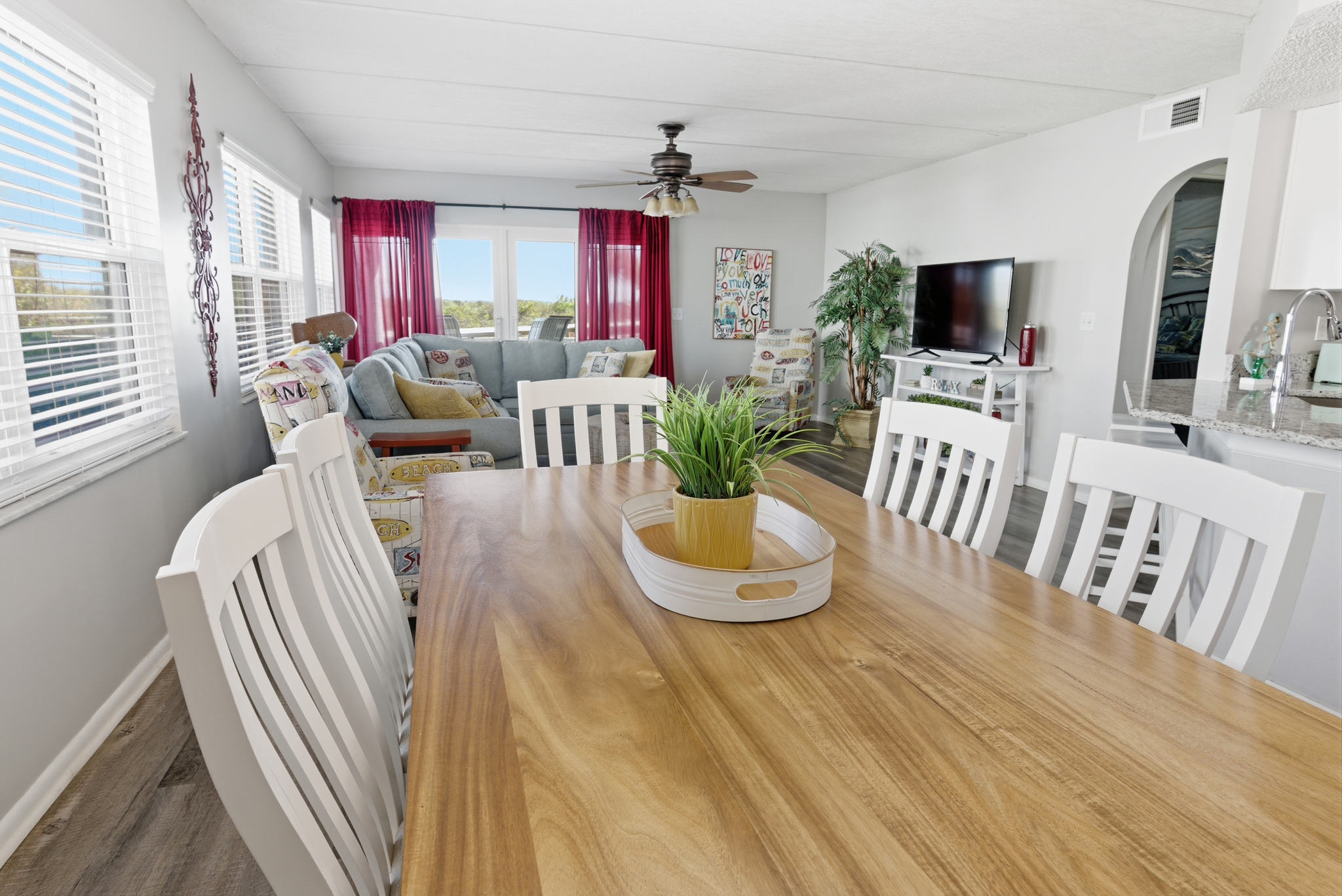 Fabulous location with direct access to the beach. Porch gets lots of afternoon shade and a breeze. Great for reading or playing games. Beds are comfy. Kitchen is adequately stocked. Rental company was responsive.