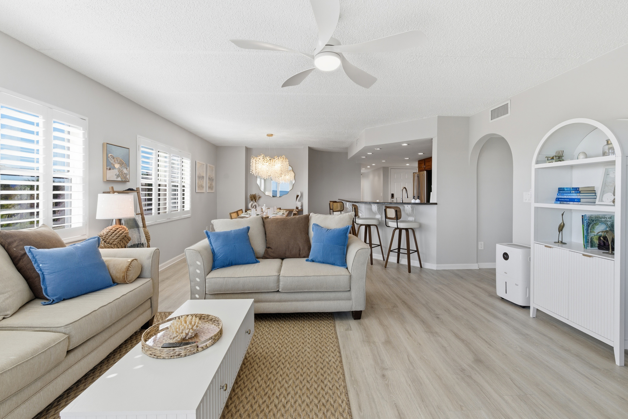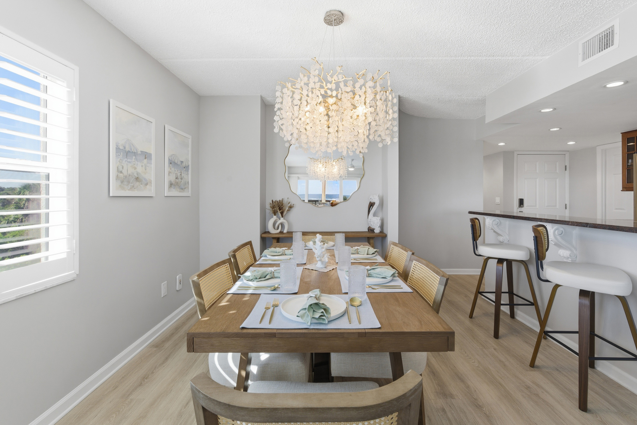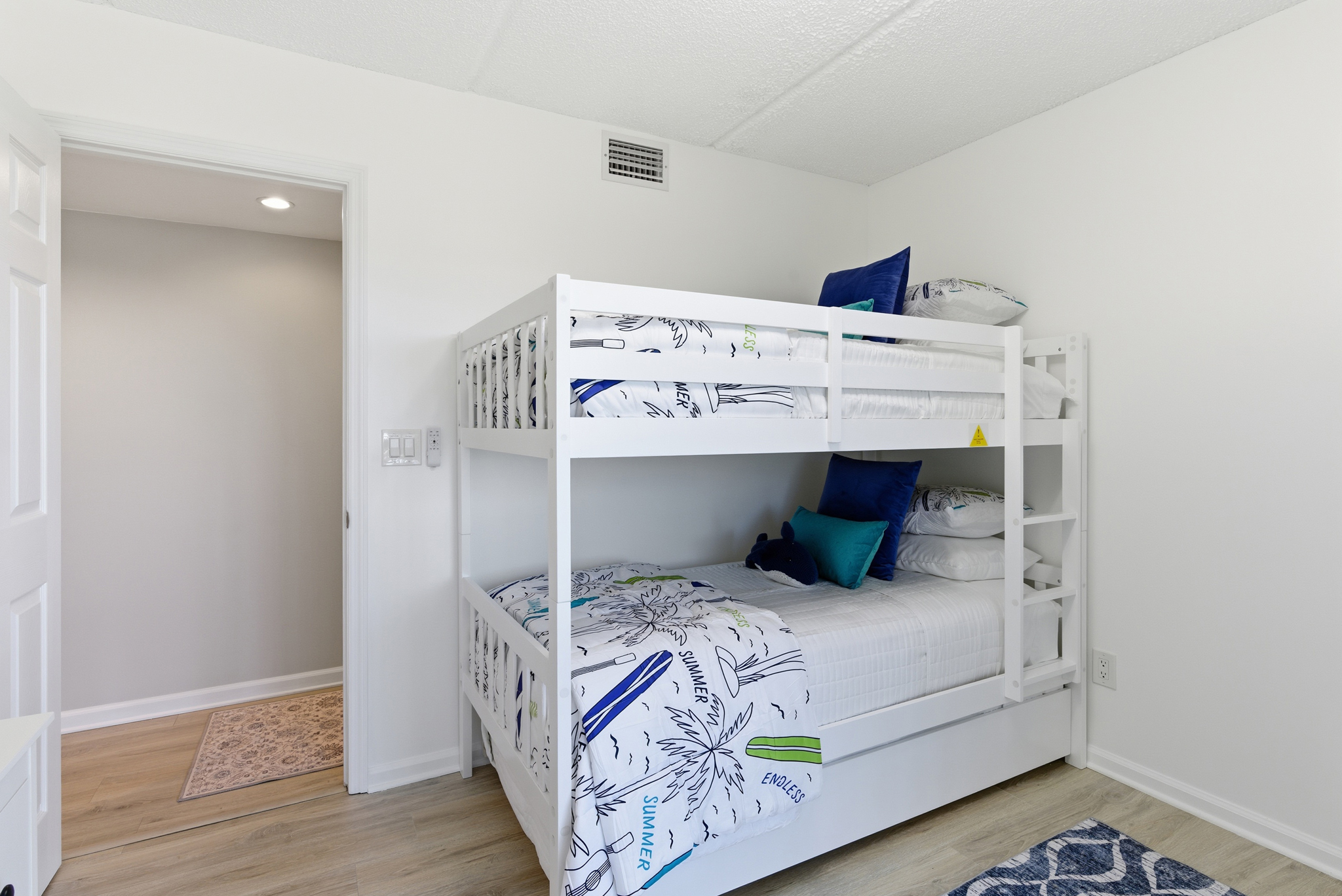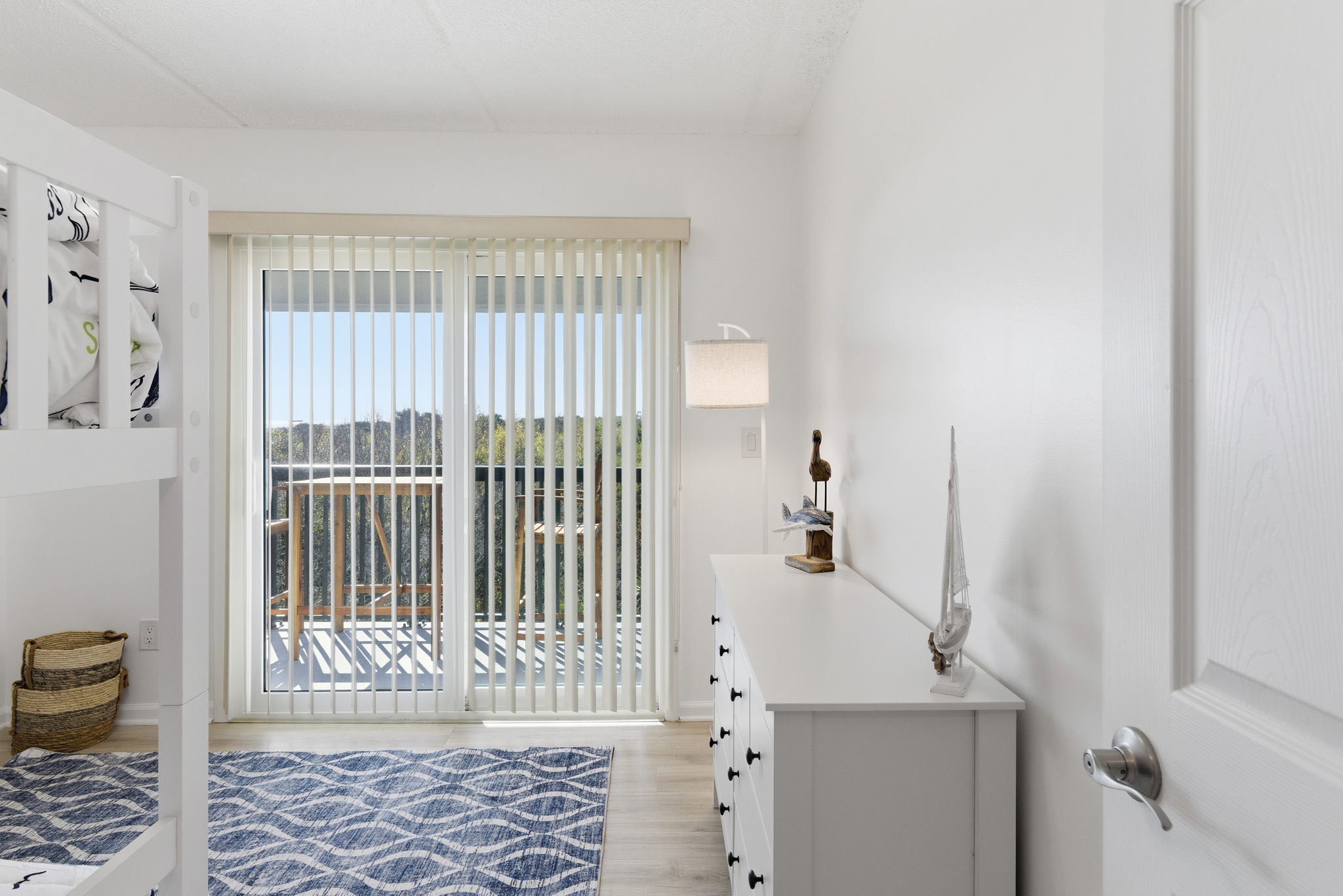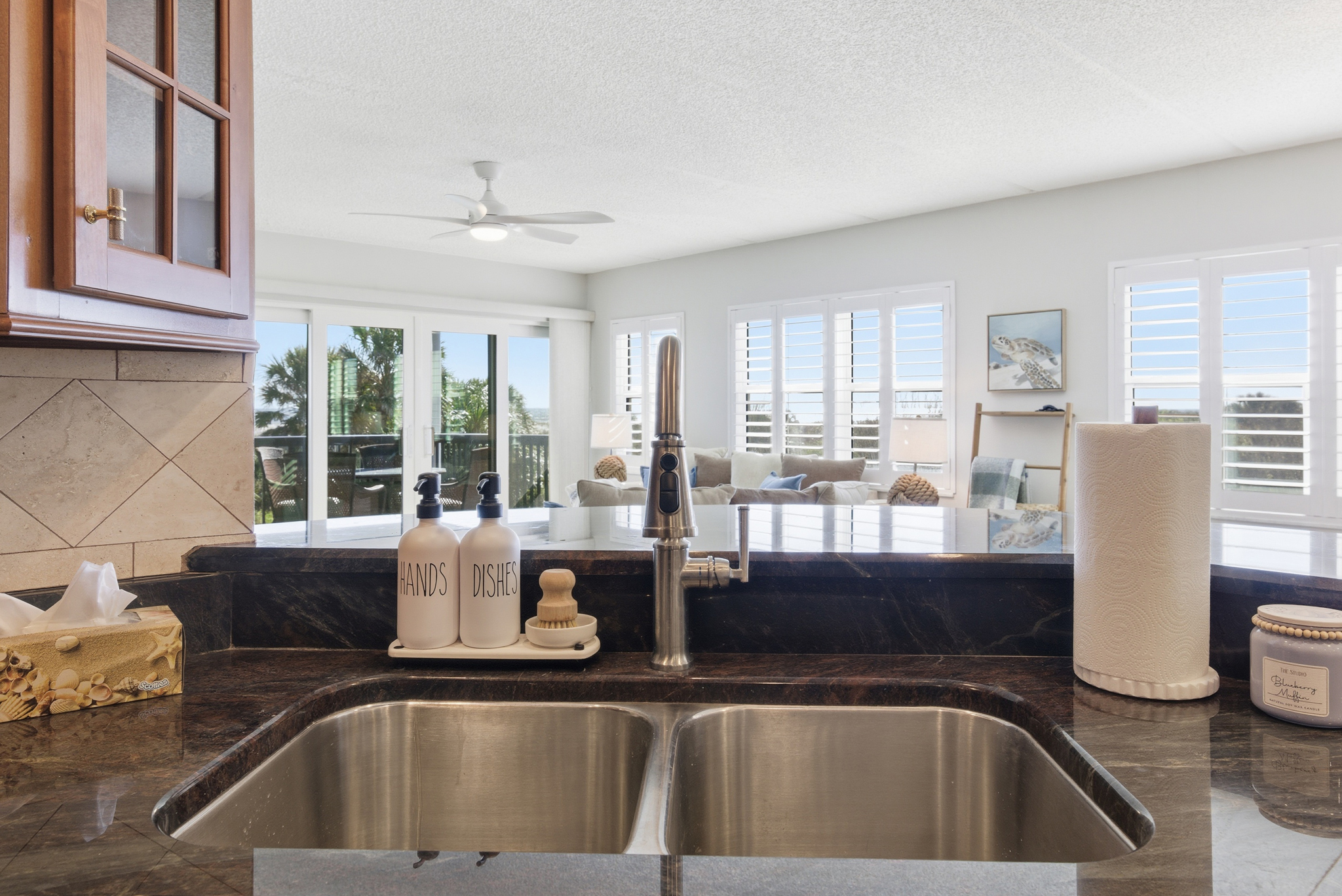 Welcome to Bermuda Run! A quiet and peaceful private gated community on St. Augustine Beach. This beautiful second floor unit offers stunning direct oceanfront views from every room. This unit has been tastefully updated with comfortable furnishings and designer touches throughout. The spacious living/dining combo provides ample space to comfortably enjoy the stunning views and has direct access to the large private oceanfront balcony. The dining table seats six and the roomy kitchen is fully equipped to prepare your favorite meals and has bar seating for four. The primary bedroom has a king bed, smart TV, ceiling fan, direct access to the private balcony and an en-suite bathroom with walk in shower. The second bedroom has a queen bed, ceiling fan, smart TV and access to a second balcony with ocean views. The third bedroom has a bunk bed with pull out trundle, ceiling fan and access to the second balcony. There is a hall bath with a shower/tub combo shared by the second and third bedrooms. Other features include a laundry room with full size washer and dryer, porta crib, highchair, children's books, children's dishes and sippy cups, exterior ground level storage with beach chairs and other beach supplies and a community pool. Many great dining and shopping opportunities near by. Ten minutes to historic downtown St. Augustine. 2 night minimum during the off season and a week during summer. No smoking. No pets.