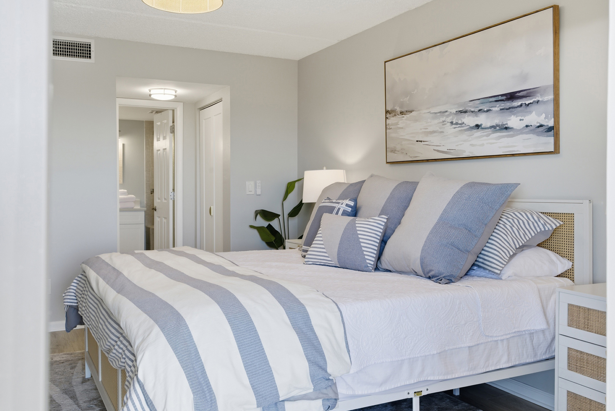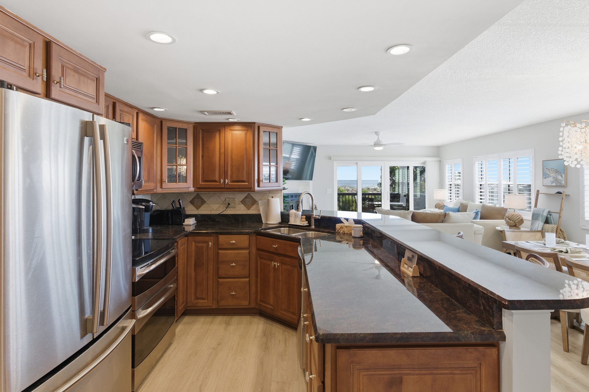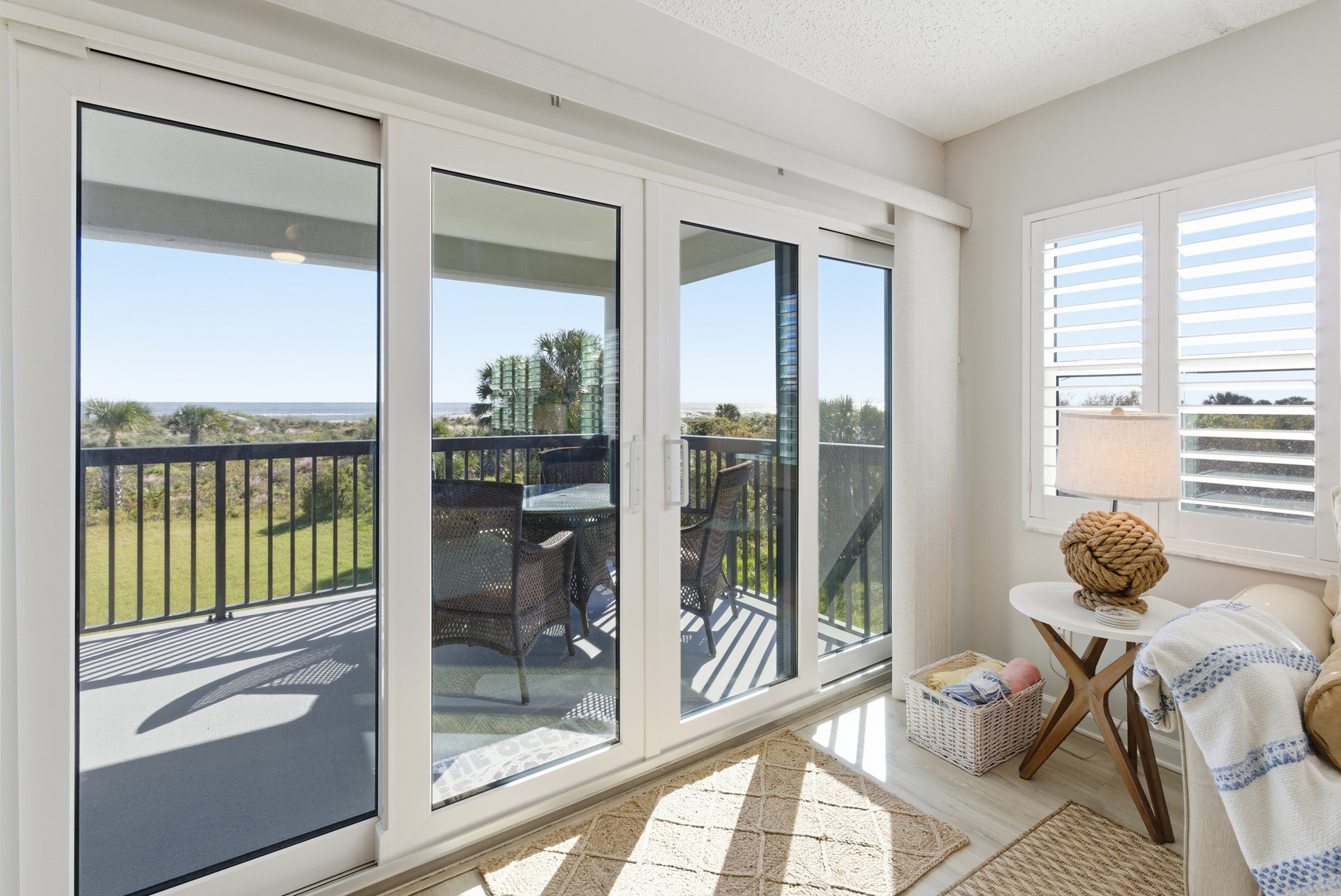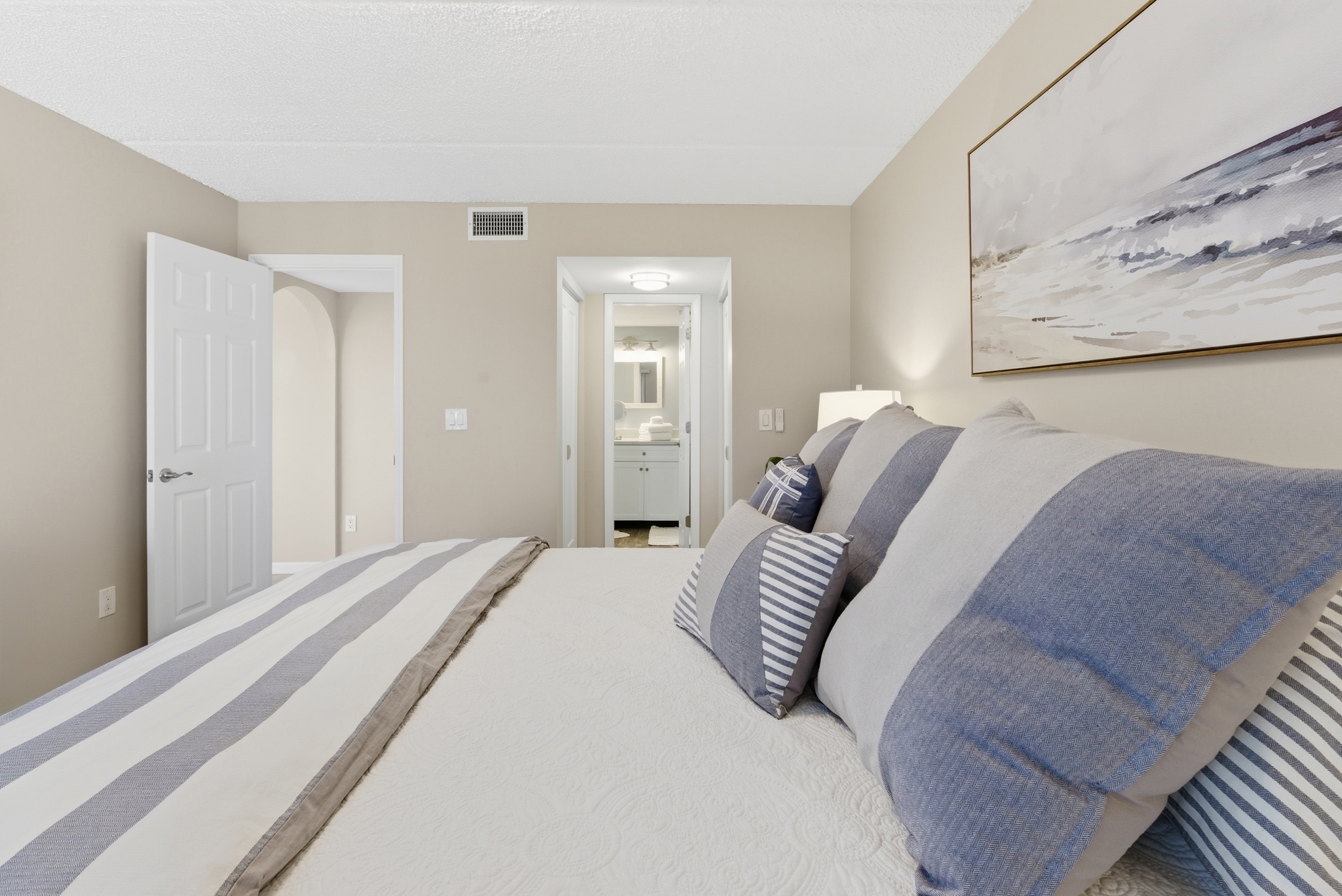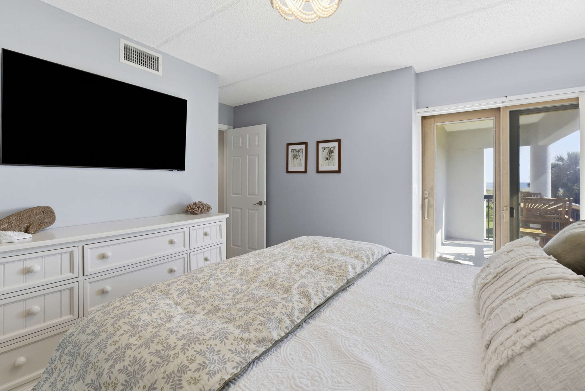 Welcome to Bermuda Run! A quiet and peaceful private gated community on St. Augustine Beach. This beautiful second floor unit offers stunning direct oceanfront views from every room. This unit has been tastefully updated with comfortable furnishings and designer touches throughout. The spacious living/dining combo provides ample space to comfortably enjoy the stunning views and has direct access to the large private oceanfront balcony. The dining table seats six and the roomy kitchen is fully equipped to prepare your favorite meals and has bar seating for four. The primary bedroom has a king bed, smart TV, ceiling fan, direct access to the private balcony and an en-suite bathroom with walk in shower. The second bedroom has a queen bed, ceiling fan, smart TV and access to a second balcony with ocean views. The third bedroom has a bunk bed with pull out trundle, ceiling fan and access to the second balcony. There is a hall bath with a shower/tub combo shared by the second and third bedrooms. Other features include a laundry room with full size washer and dryer, porta crib, highchair, children's books, children's dishes and sippy cups, exterior ground level storage with beach chairs and other beach supplies and a community pool. Many great dining and shopping opportunities near by. Ten minutes to historic downtown St. Augustine. 2 night minimum during the off season and a week during summer. No smoking. No pets.
