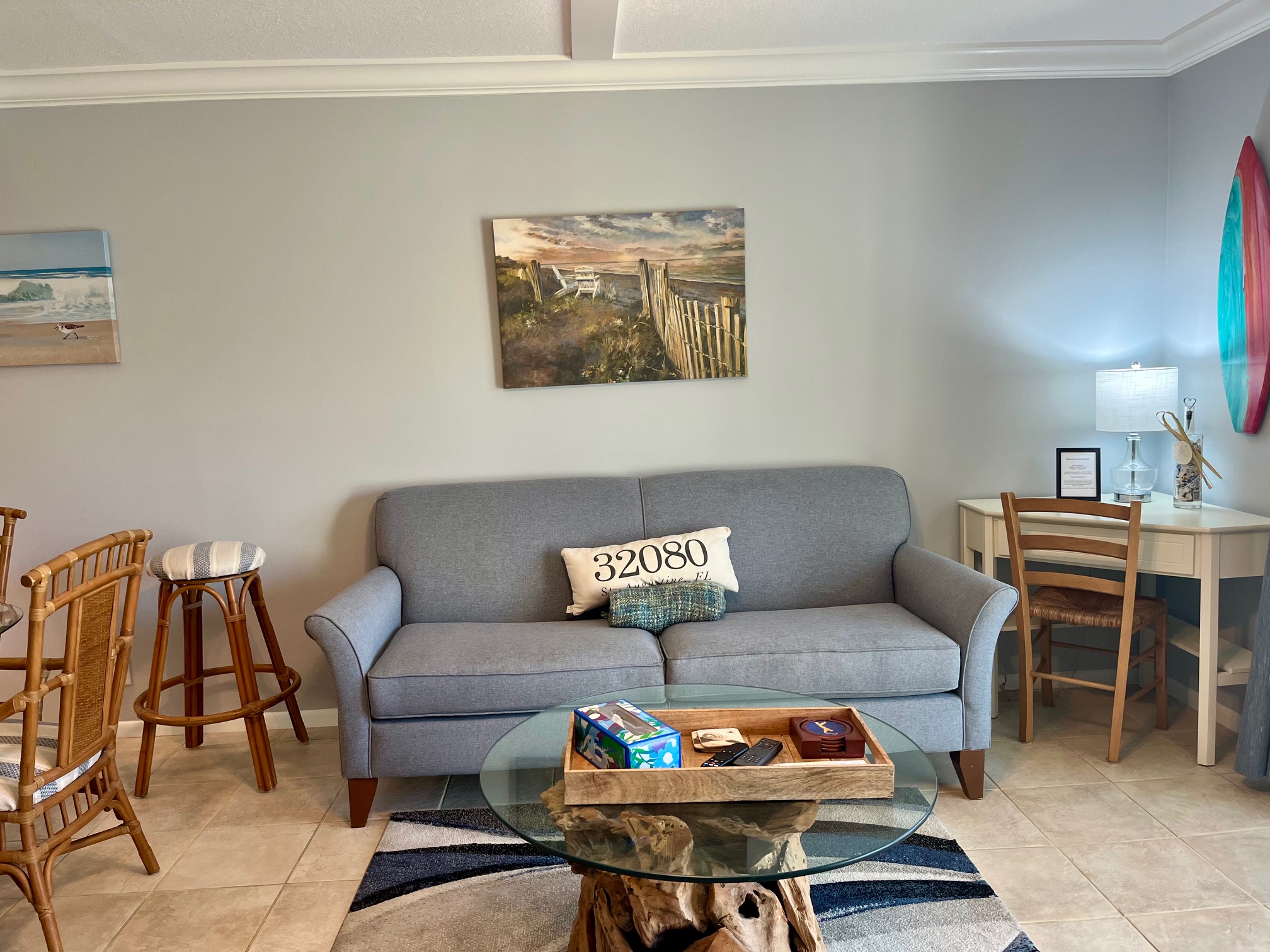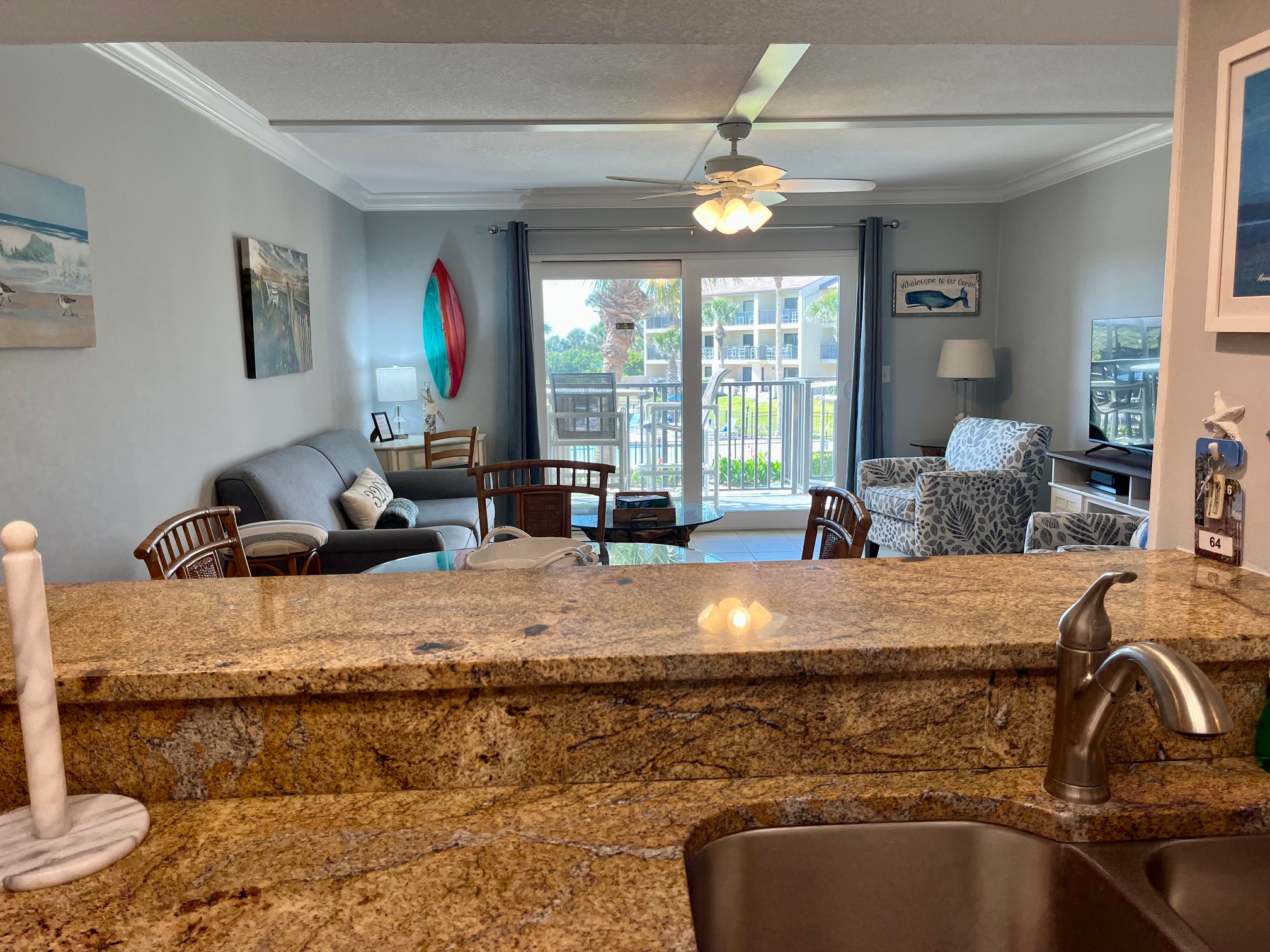 We have been renting from Resort Rentals for many years. We love this complex. It's so close to all the good eats in St. Augustine Beach. So close to the historic areas of St. Augustine as well. The beach is one of the most beautiful in Florida. This room was nice! We always try to get this exact condo every year. The two bedroom units have by far the best view of the ocean.