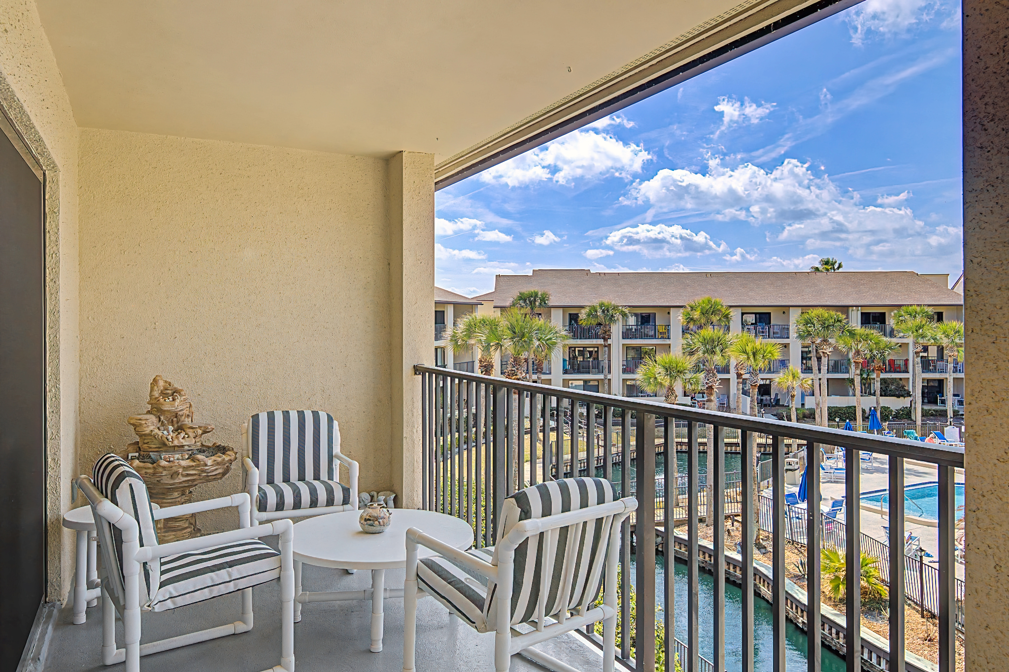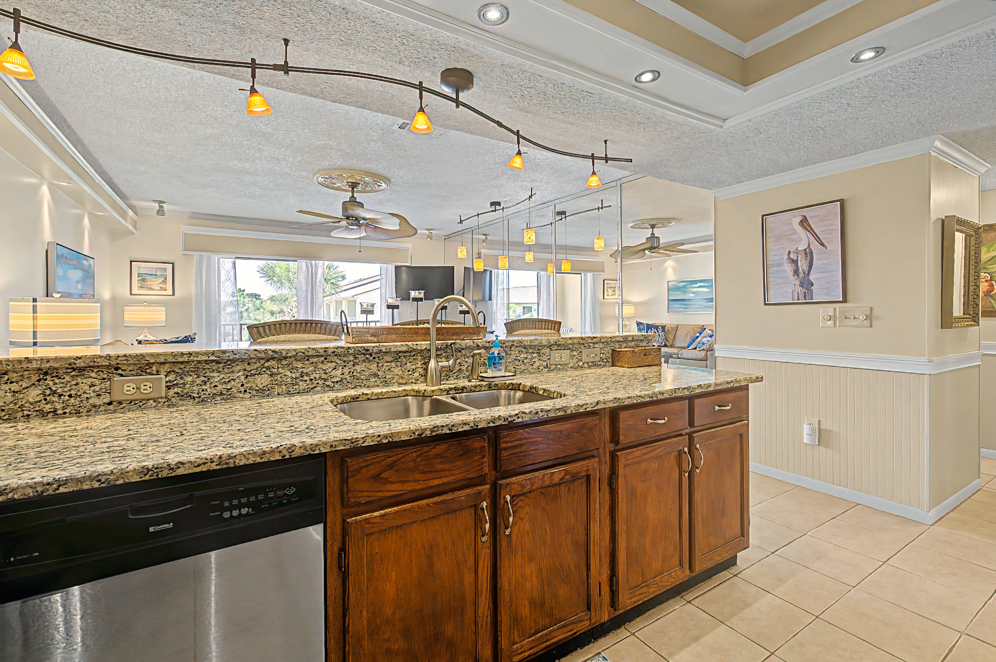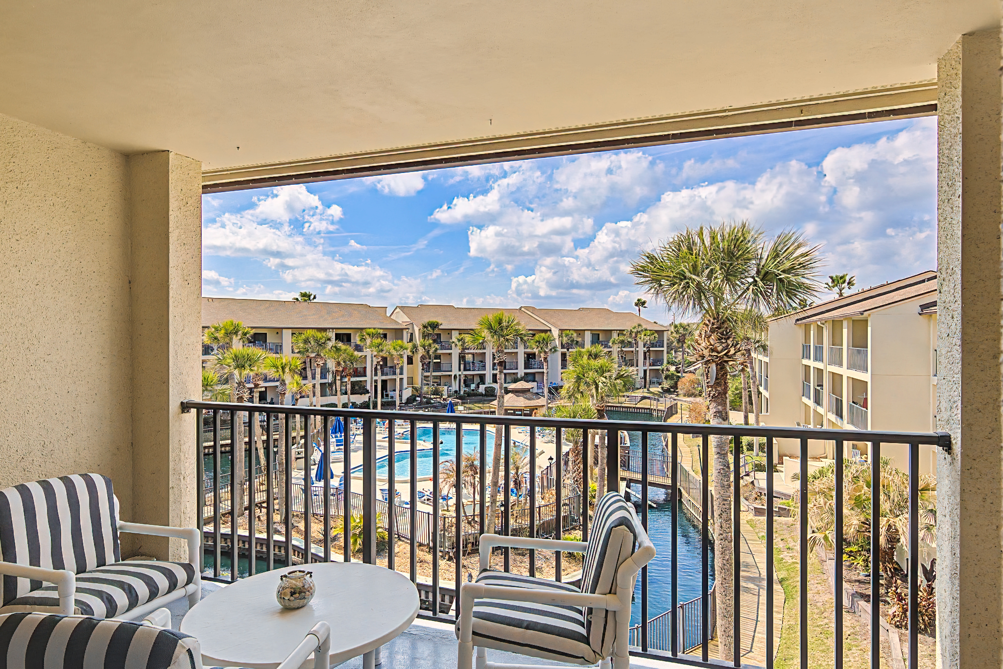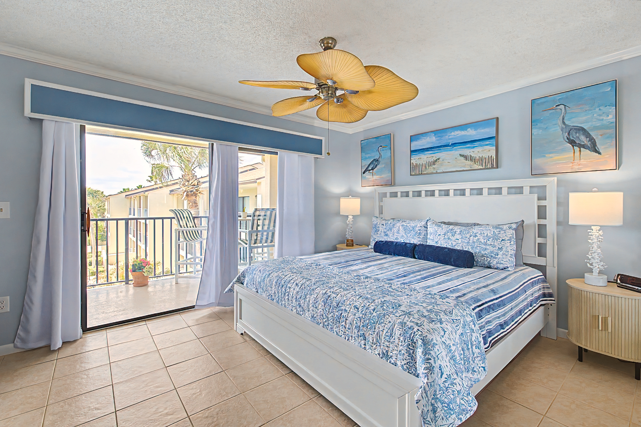 This third floor, three bedroom, two bathroom condo is located on the third floor and overlooks the beautiful, tropical lagoon, heated pool and is just a short stroll to the community beach access and oceanside pool. The living room has direct access to the large balcony and features a smart TV, ceiling fan and connected dining area with table seating for three and bar seating for four. The kitchen is fully equipped with all you need to prepare meals. The primary bedroom has a king bed, TV, ceiling fan and access to the private balcony. The second bedroom has a queen, TV and ceiling fan. The third bedroom has a sleeper sofa, TV and ceiling fan and is set up to be suitable as a rec room or den area as an alternative. The unit has a laundry room with full size washer and dryer, beach chairs, coolers boogie boards. Ocean Villas has two pools, one heated and private beach access and is located within walking or biking distance to several dining and shopping options. Small dogs 30 lbs and under permitted with a $250 non refundable pet fee. No smoking.