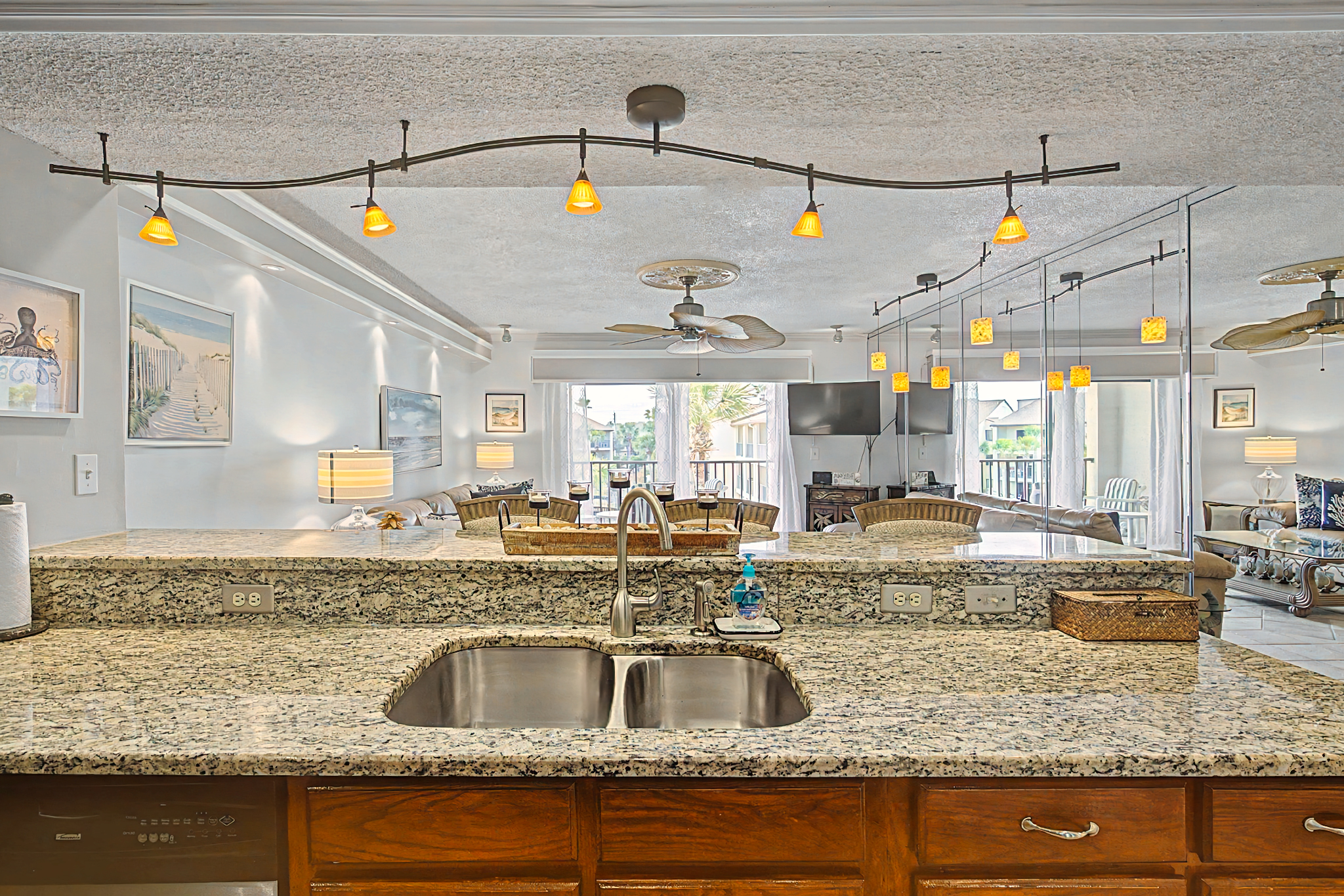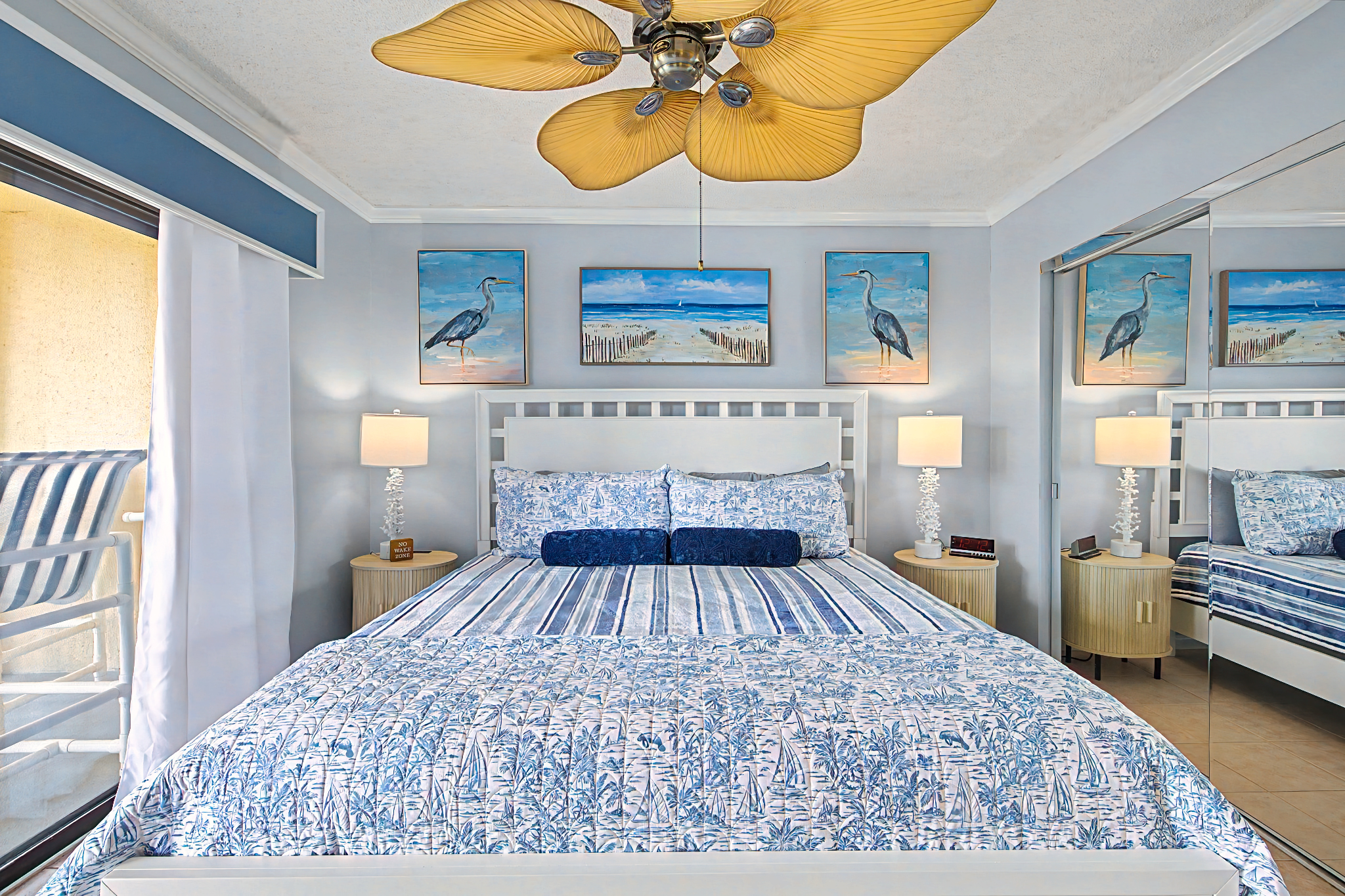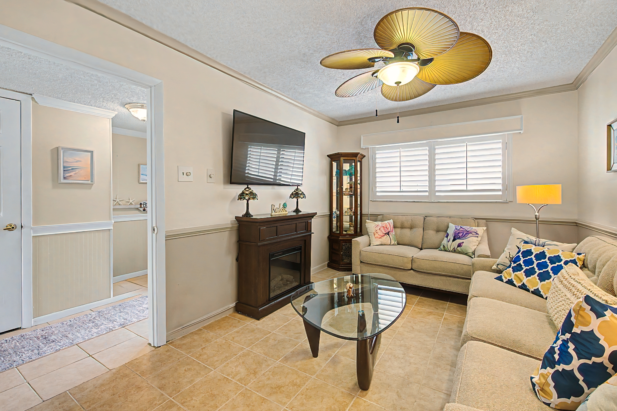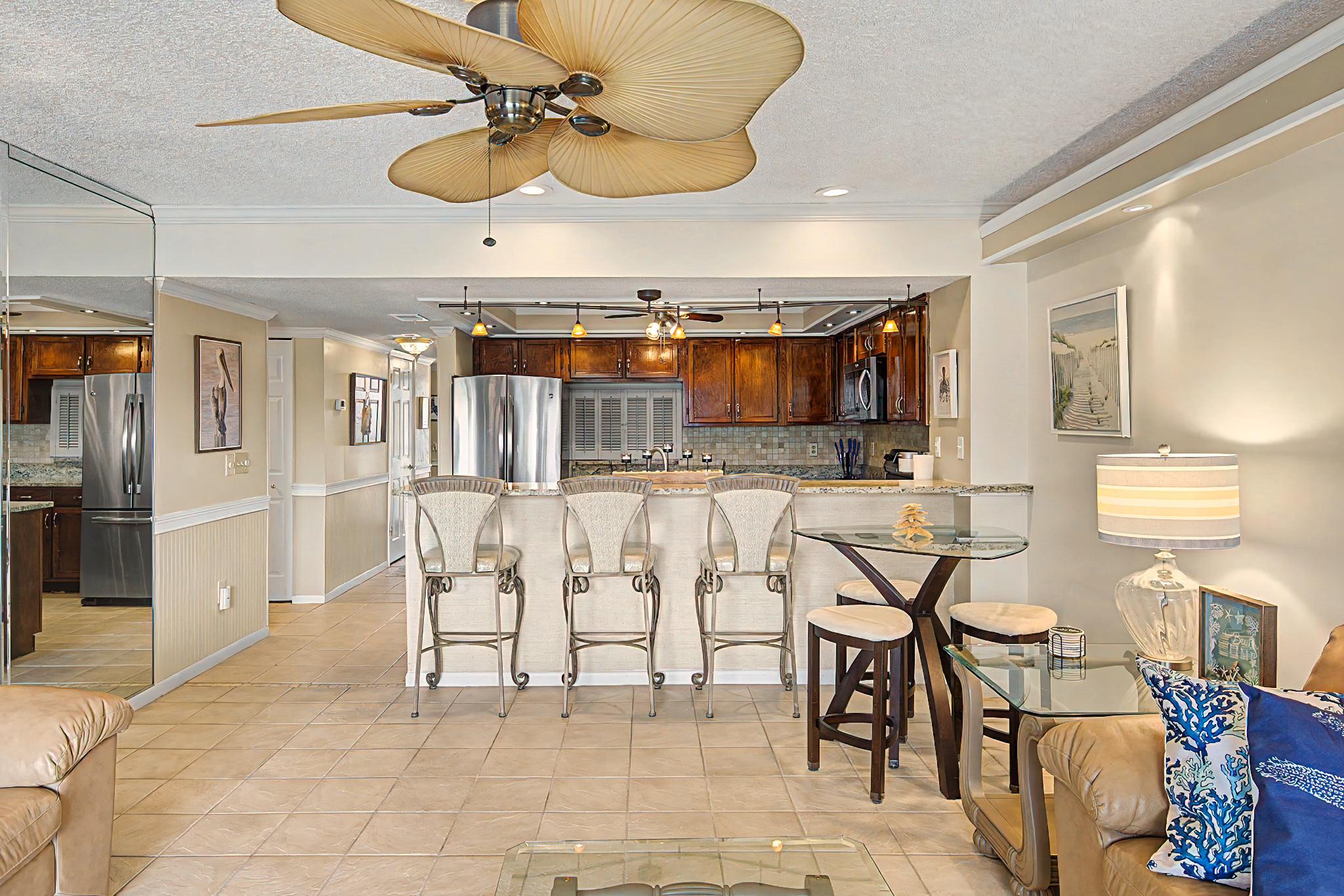 This third floor, three bedroom, two bathroom condo is located on the third floor and overlooks the beautiful, tropical lagoon, heated pool and is just a short stroll to the community beach access and oceanside pool. The living room has direct access to the large balcony and features a smart TV, ceiling fan and connected dining area with table seating for three and bar seating for four. The kitchen is fully equipped with all you need to prepare meals. The primary bedroom has a king bed, TV, ceiling fan and access to the private balcony. The second bedroom has a queen, TV and ceiling fan. The third bedroom has a sleeper sofa, TV and ceiling fan and is set up to be suitable as a rec room or den area as an alternative. The unit has a laundry room with full size washer and dryer, beach chairs, coolers boogie boards. Ocean Villas has two pools, one heated and private beach access and is located within walking or biking distance to several dining and shopping options. Small dogs 30 lbs and under permitted with a $250 non refundable pet fee. No smoking.