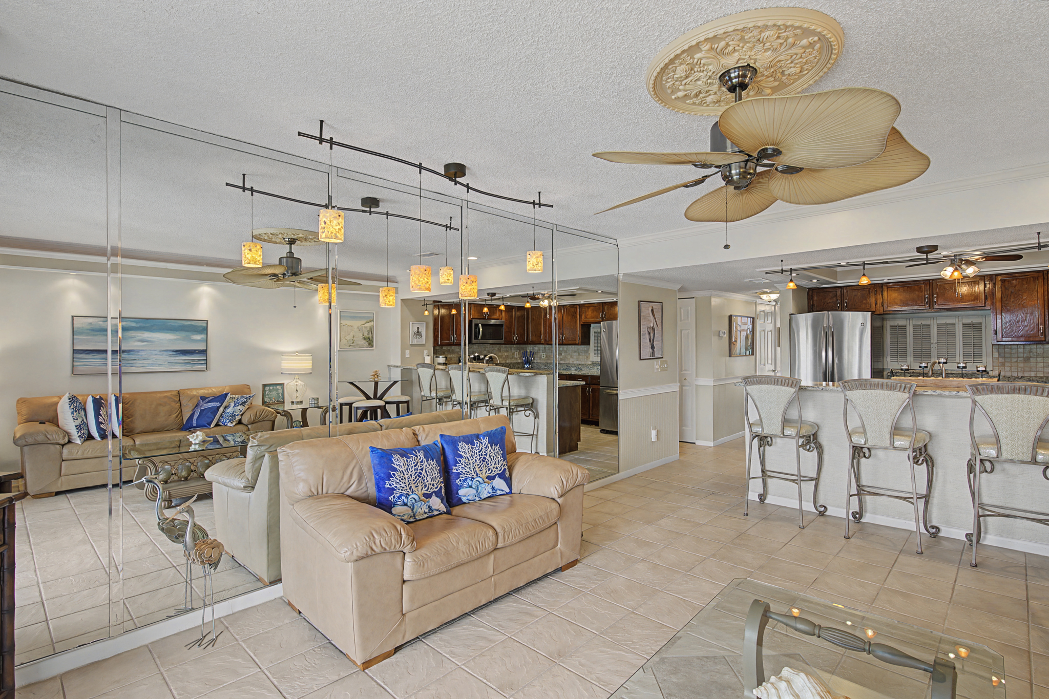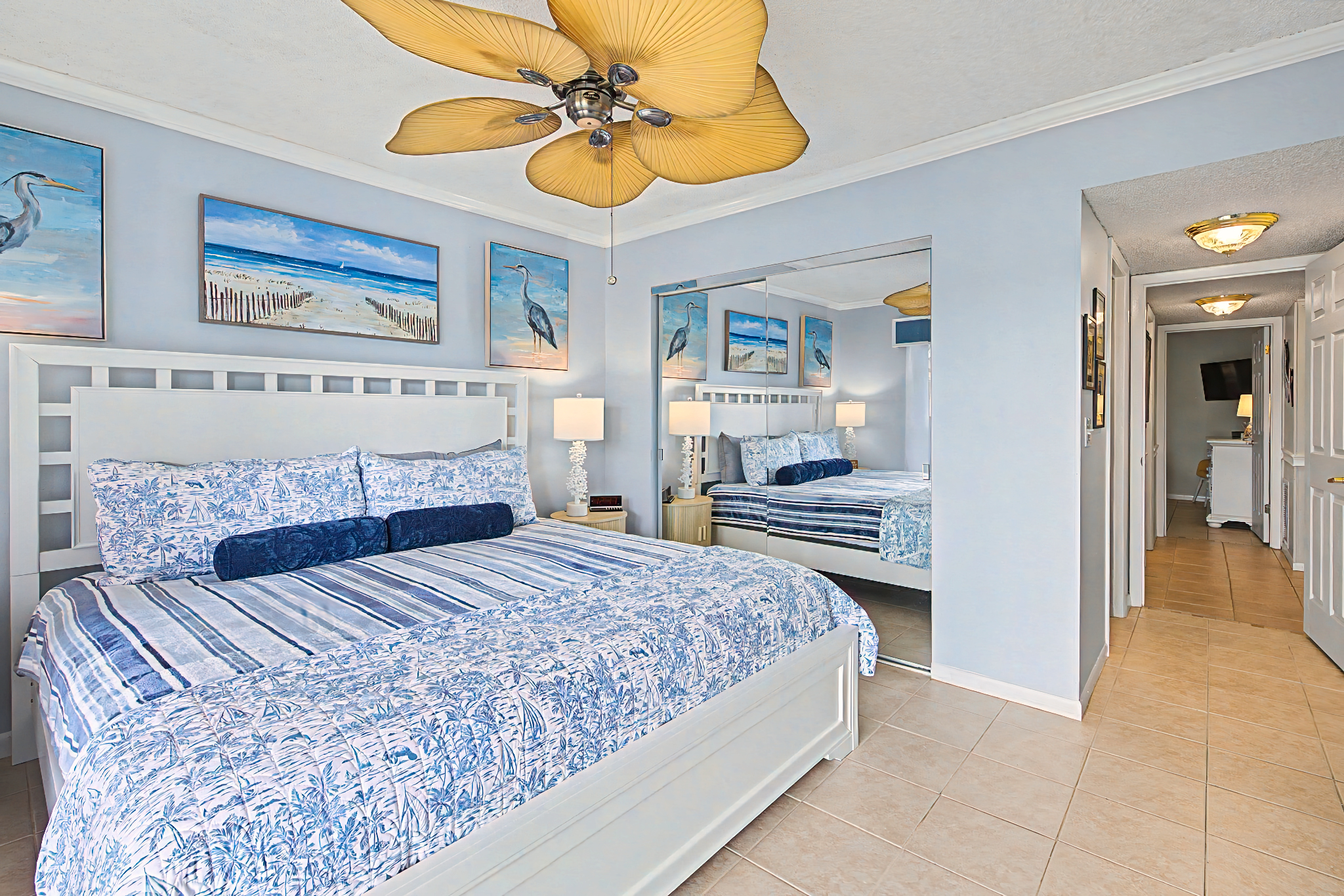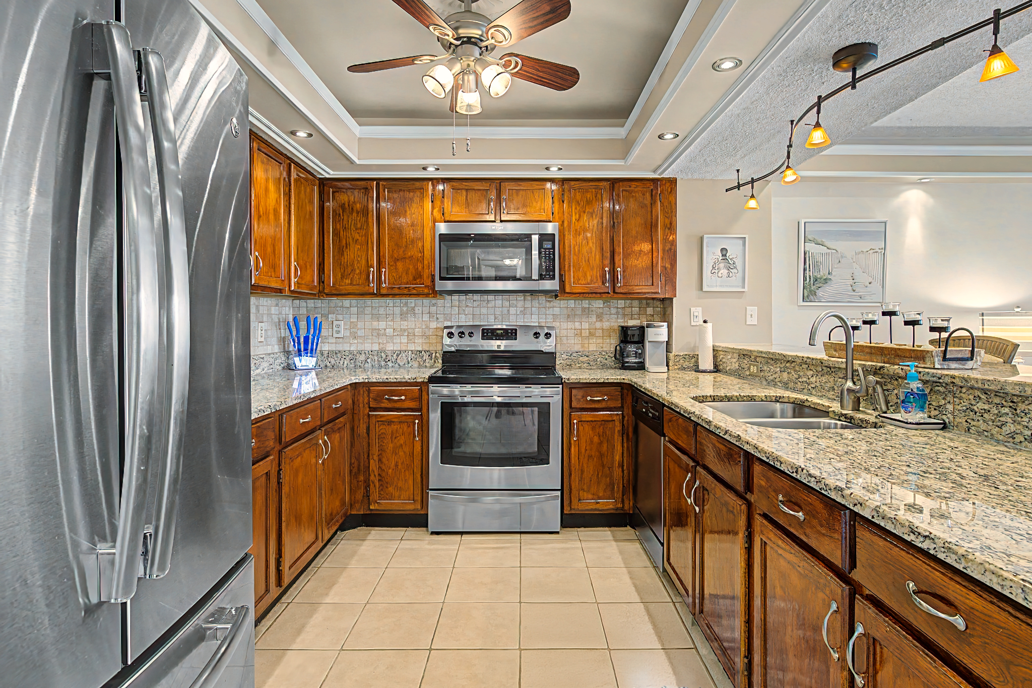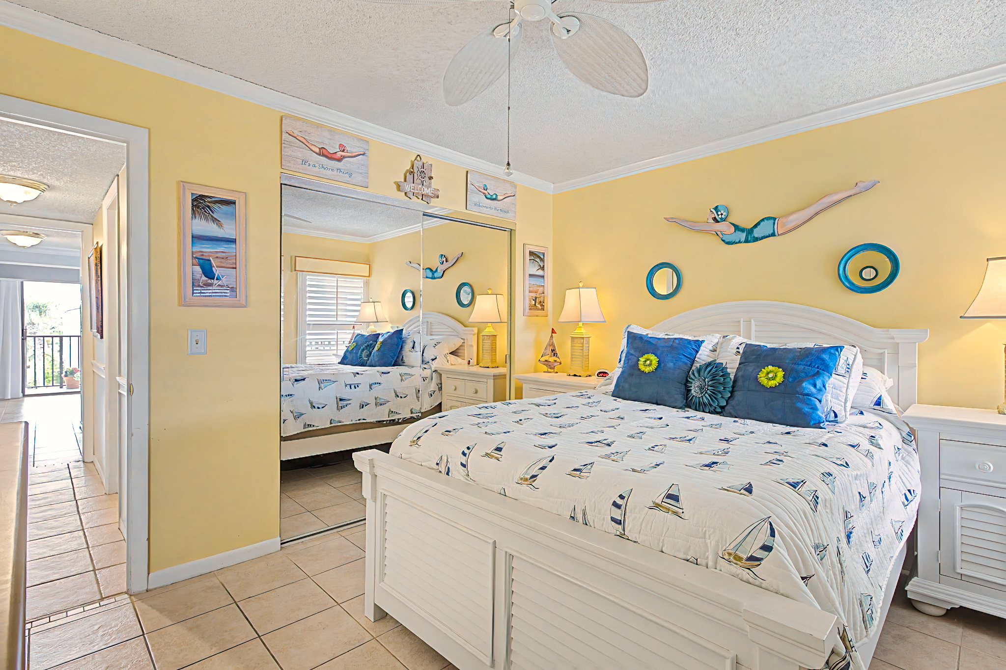 This third floor, three bedroom, two bathroom condo is located on the third floor and overlooks the beautiful, tropical lagoon, heated pool and is just a short stroll to the community beach access and oceanside pool. The living room has direct access to the large balcony and features a smart TV, ceiling fan and connected dining area with table seating for three and bar seating for four. The kitchen is fully equipped with all you need to prepare meals. The primary bedroom has a king bed, TV, ceiling fan and access to the private balcony. The second bedroom has a queen, TV and ceiling fan. The third bedroom has a sleeper sofa, TV and ceiling fan and is set up to be suitable as a rec room or den area as an alternative. The unit has a laundry room with full size washer and dryer, beach chairs, coolers boogie boards. Ocean Villas has two pools, one heated and private beach access and is located within walking or biking distance to several dining and shopping options. Small dogs 30 lbs and under permitted with a $250 non refundable pet fee. No smoking.