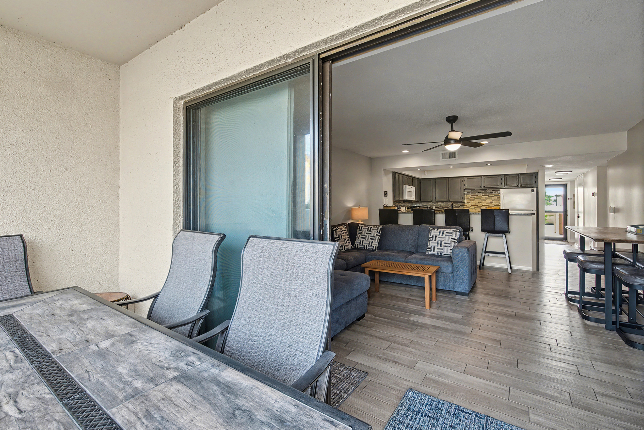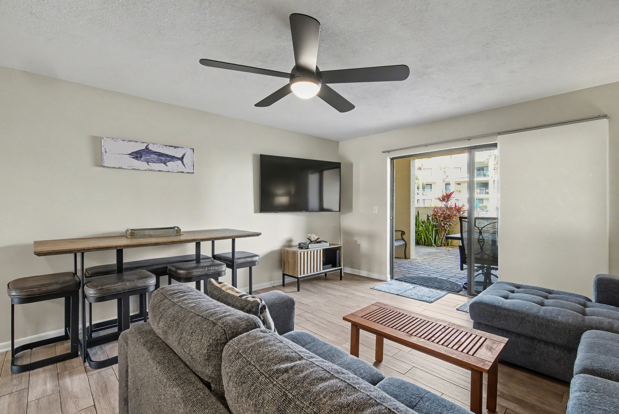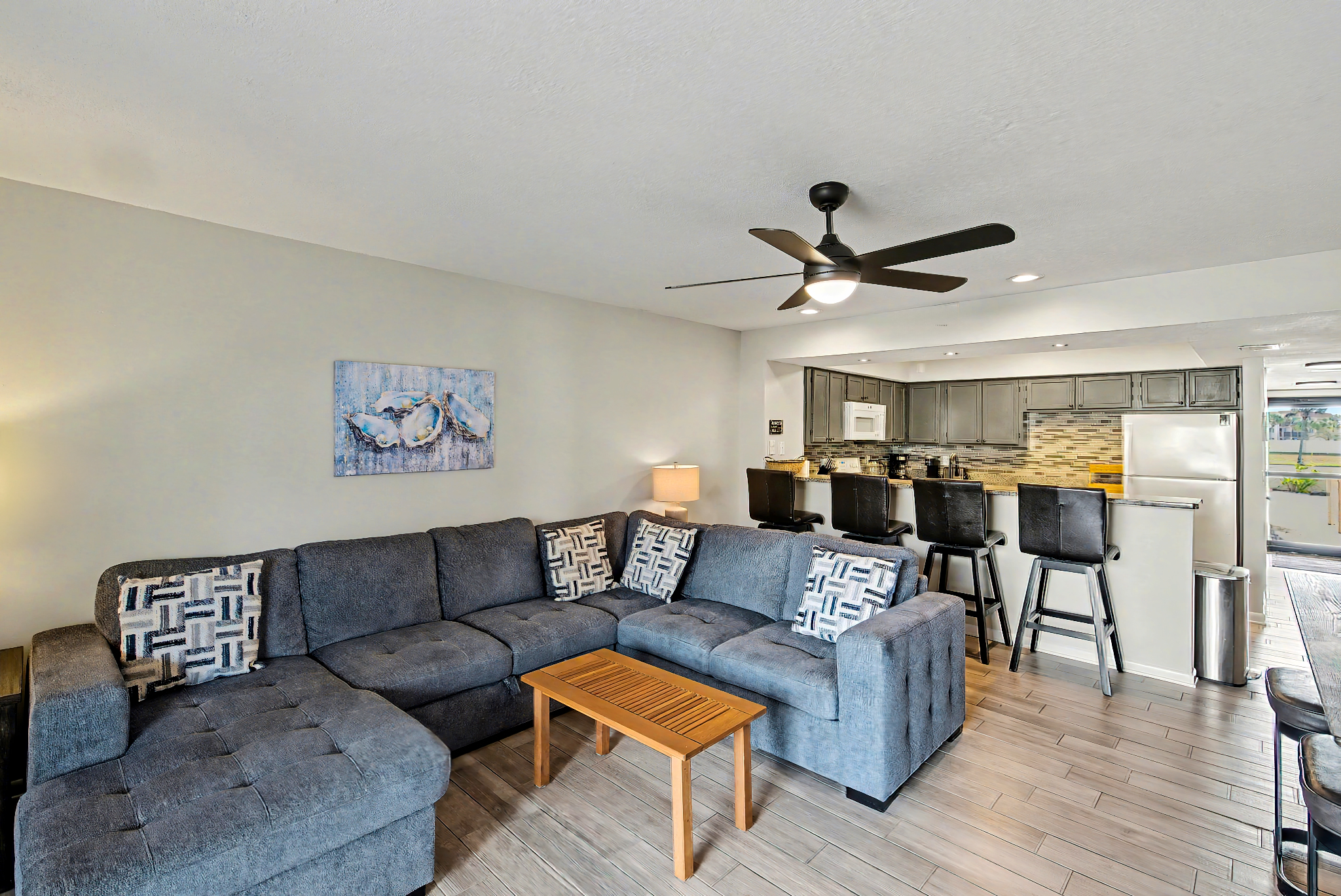 Great rental with many updates. Conveniently located by heated pool. Everything you need in the kitchen. Could use more comfortable living room seating however.
