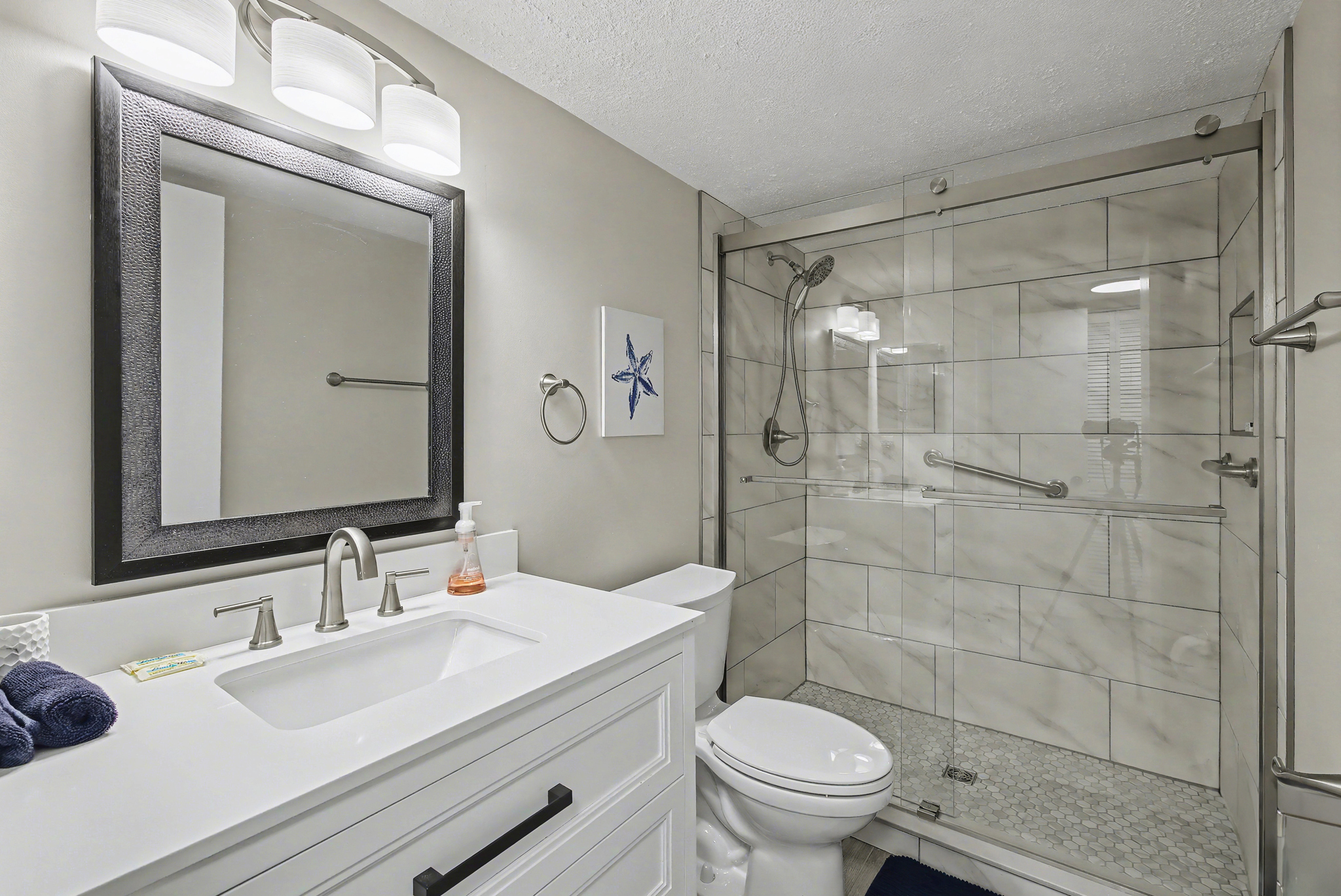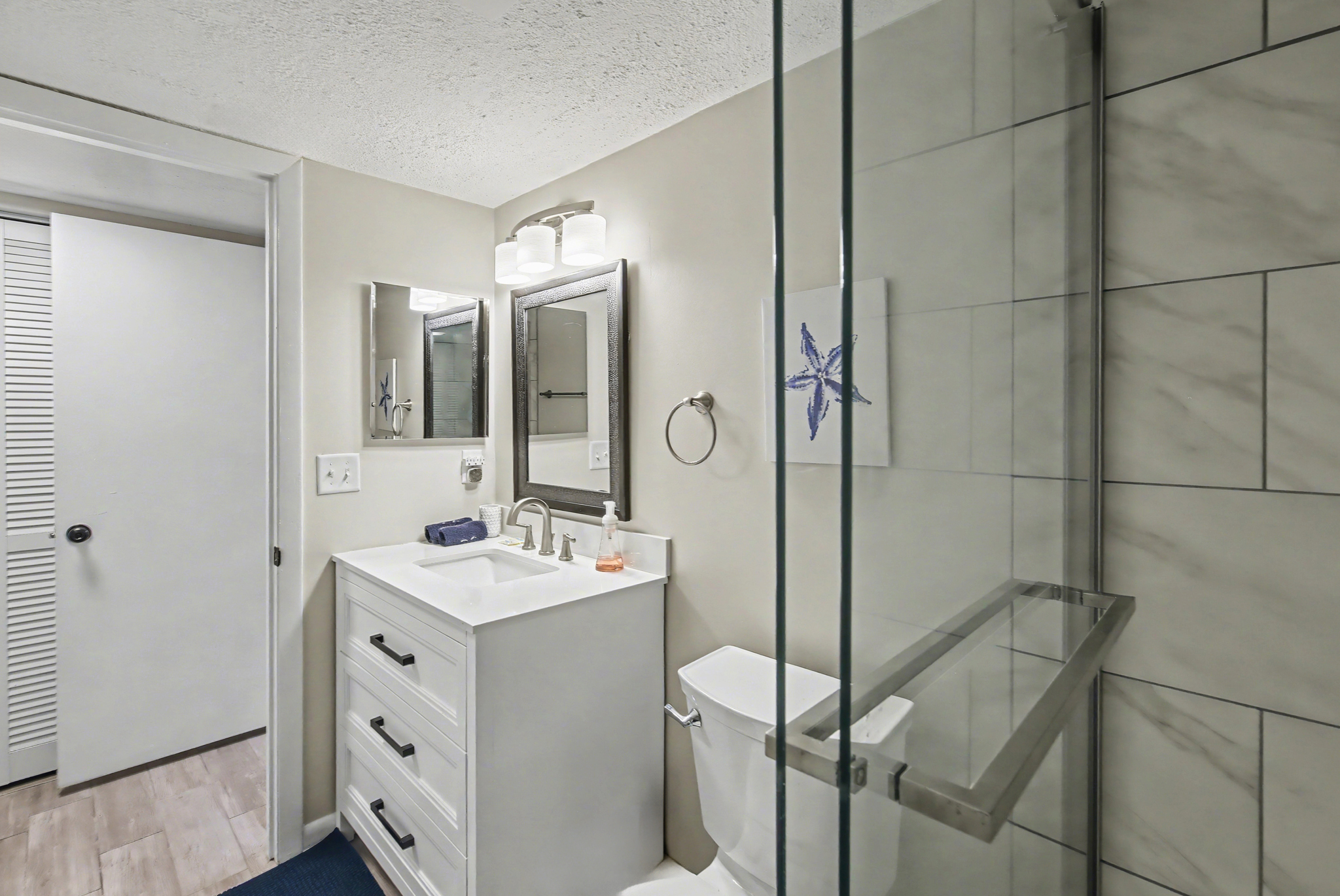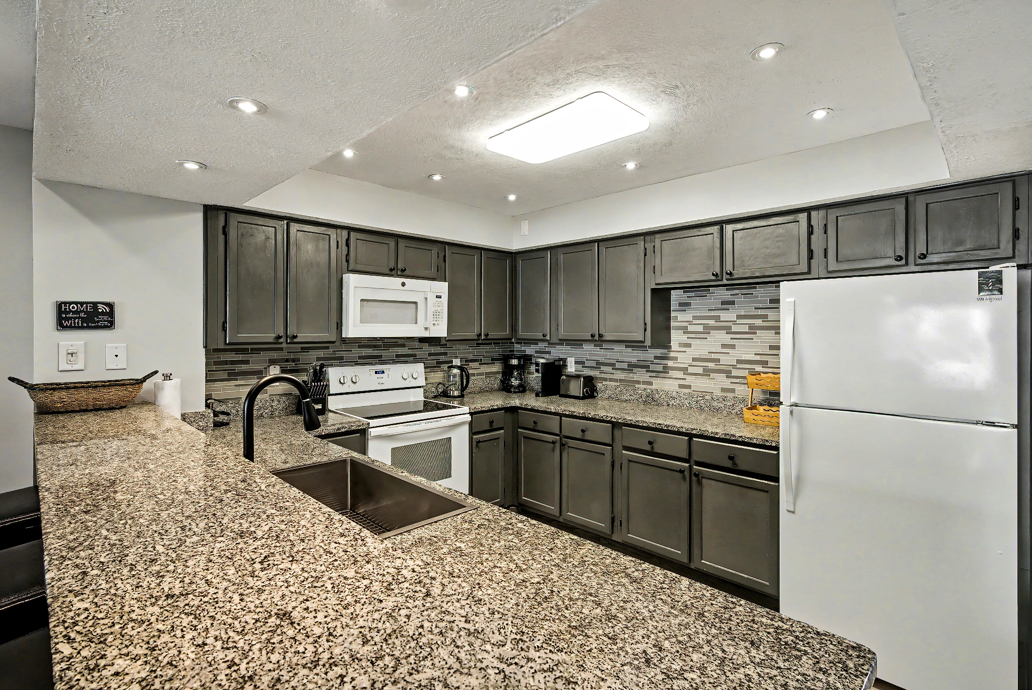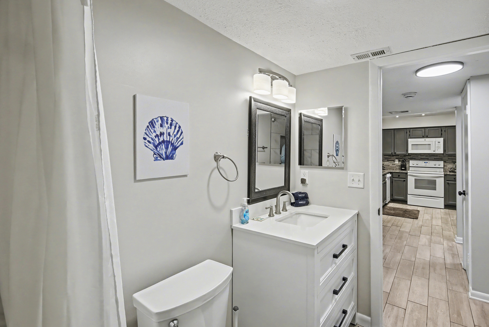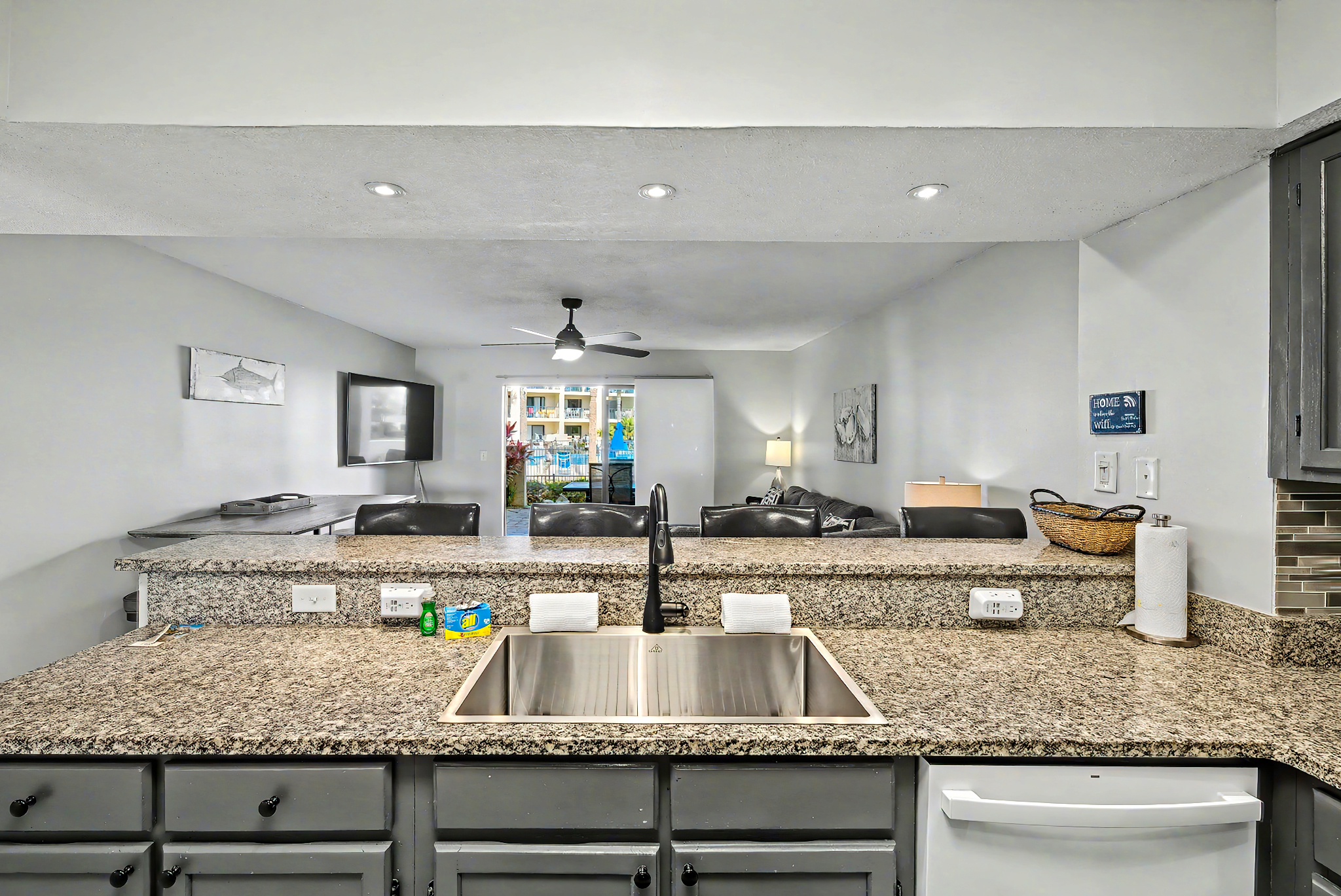This condo looks like it has recently been remodeled. It was so well-positioned with a view of the pool, the kitchen was stocked with everything you needed. Great place!